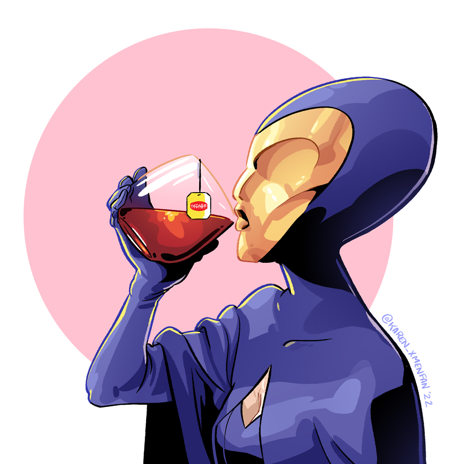 Sticker of Irene Adler, Detiny, sipping tea because she knows. 2x2"