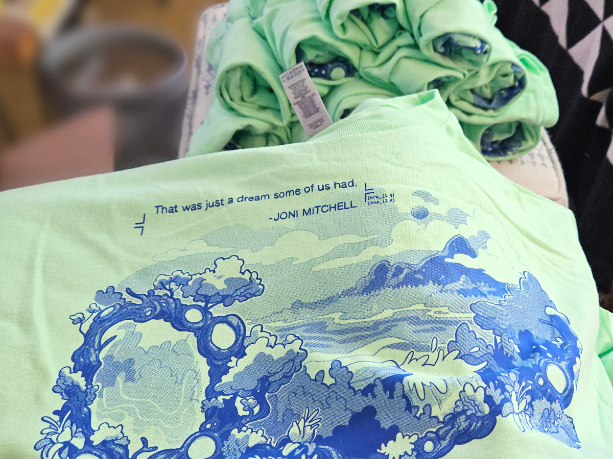 Limited edition! Blue on mint Gildan Heavy Cotton T-shirt. Screen-printed by Raw Paw in Austin, TX