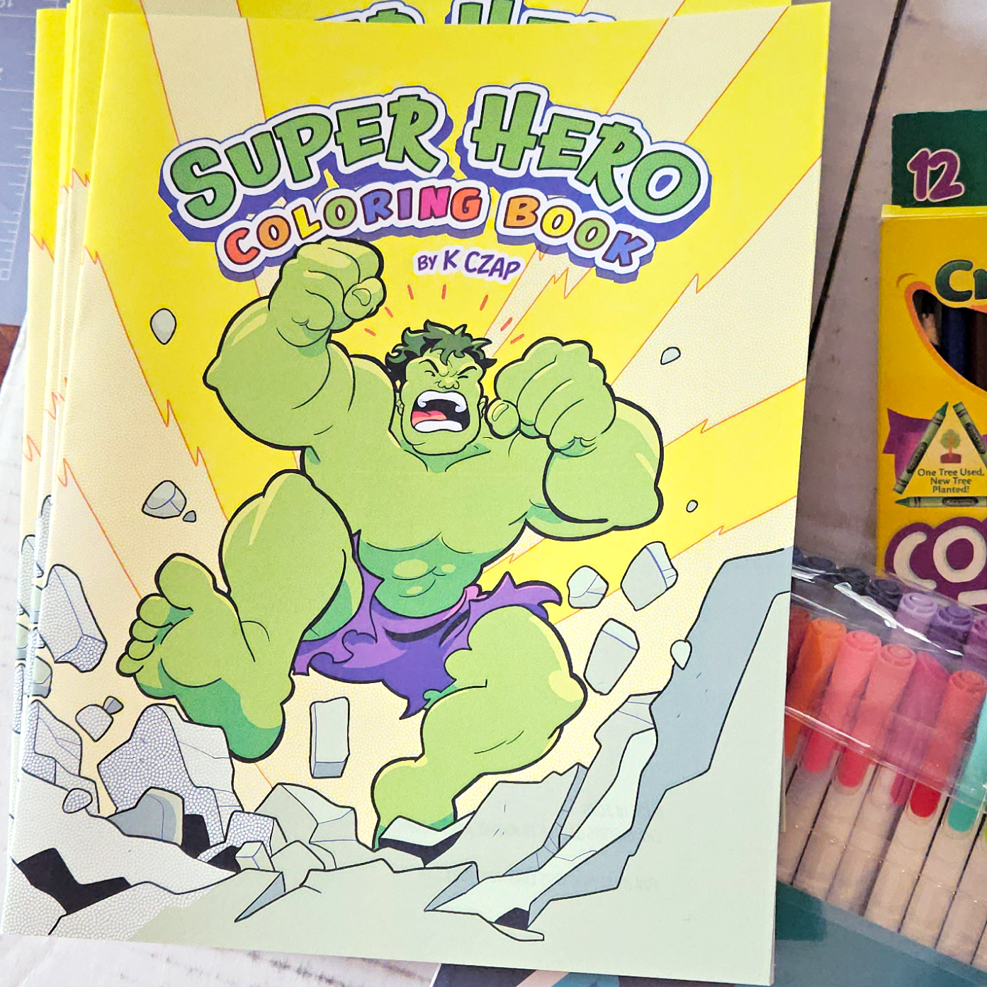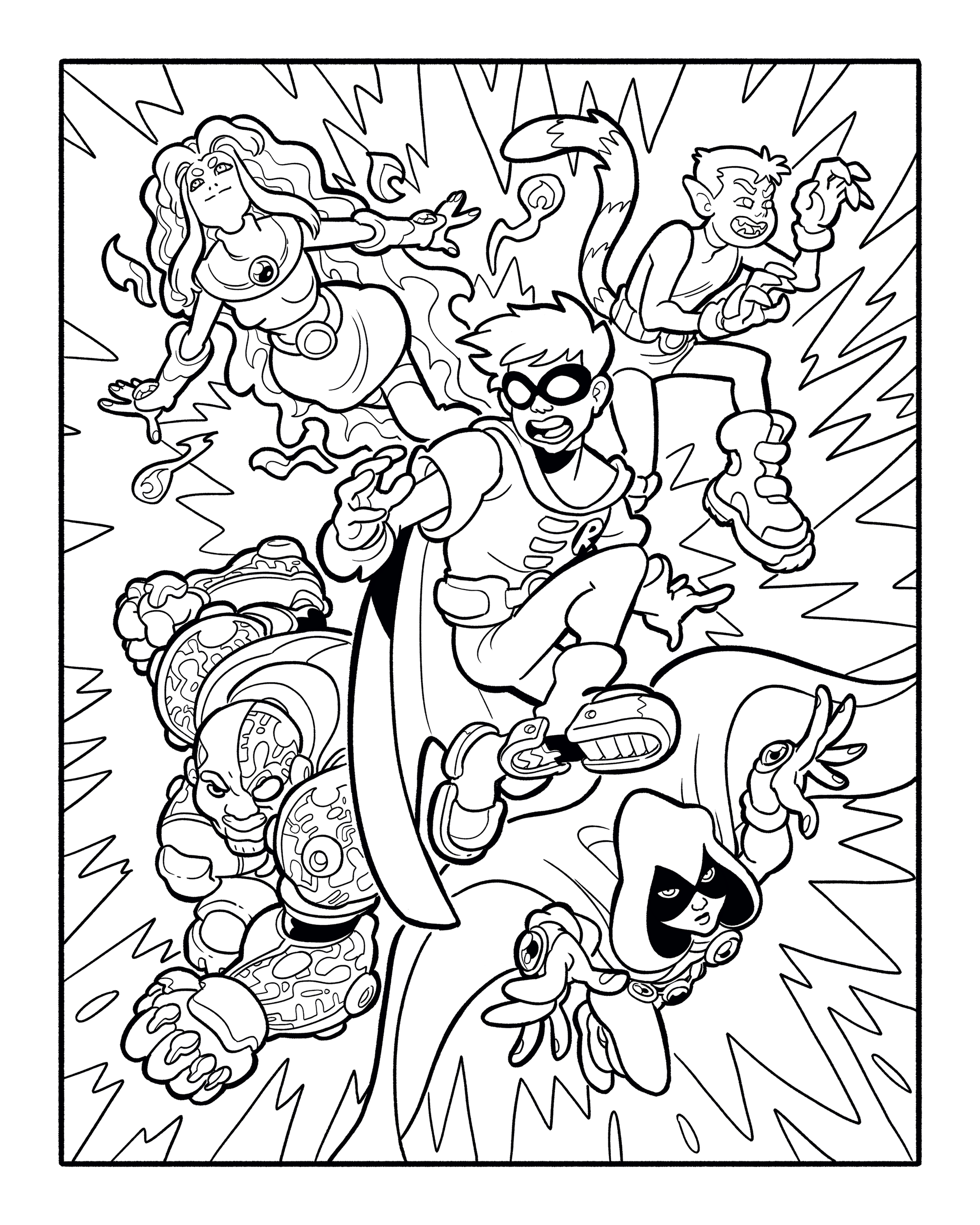 Color some of your favorite Marvel and DC super heroes including the Spiderverse, Squirrel Girl, Jeff the Landshark, the Incredible Hulk, the Avengers, the Fantastic Four, the X-Men, the Justice League, the Teen Titans, Harley Quinn & Poison Ivy, and Supergirl & Krypto the Superdog. Plus a blank page to draw your own superhero – use your imagination!