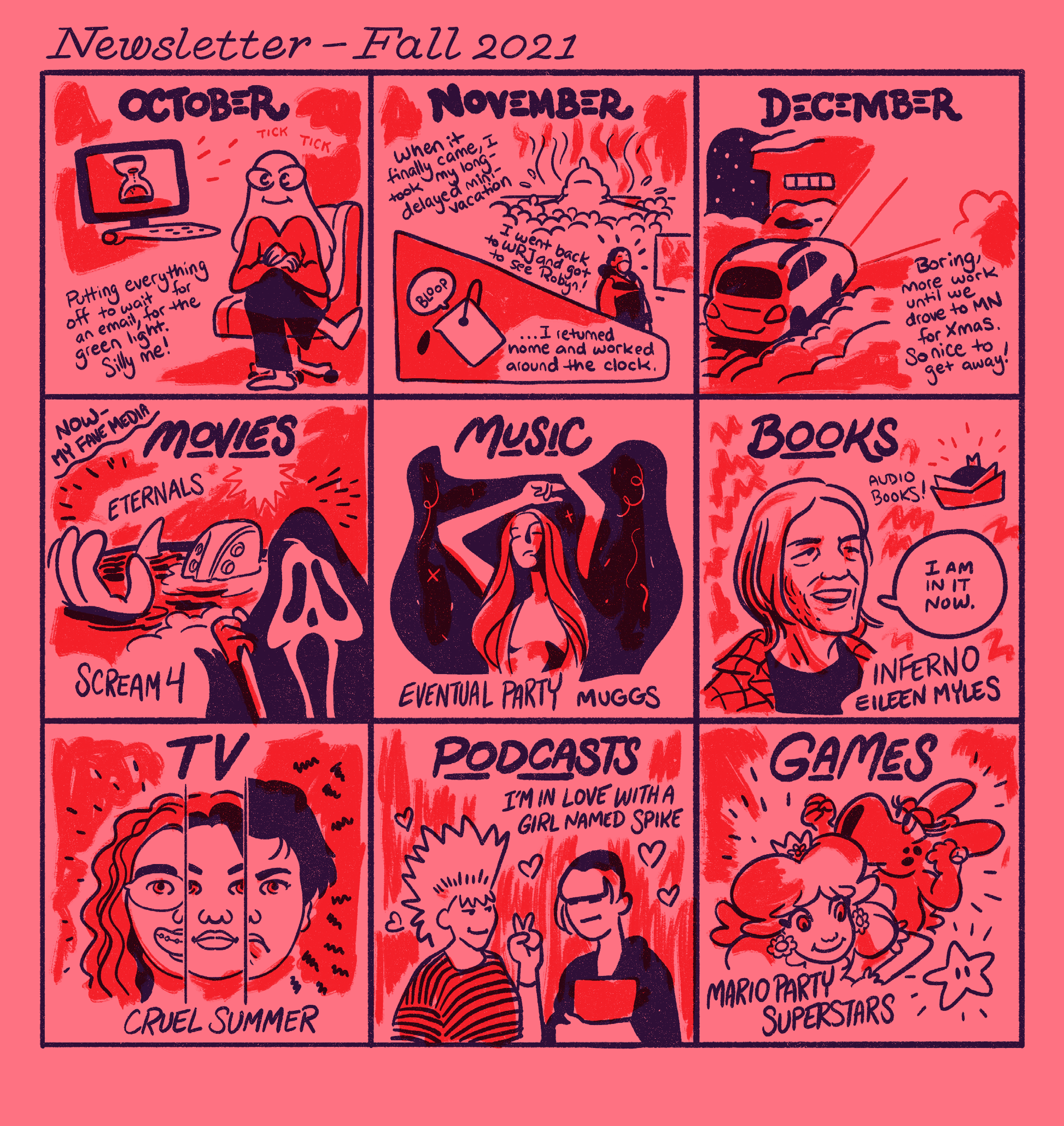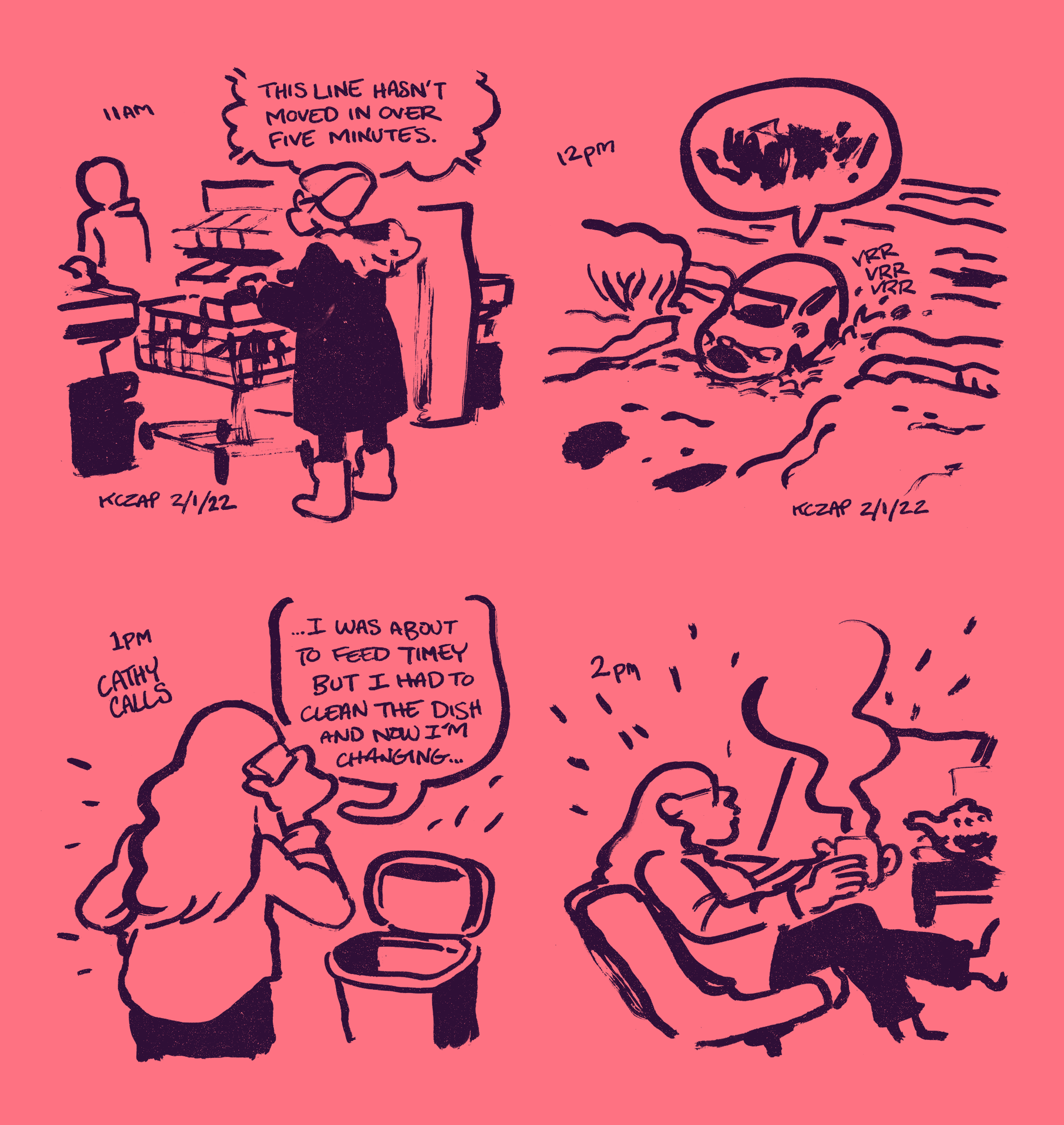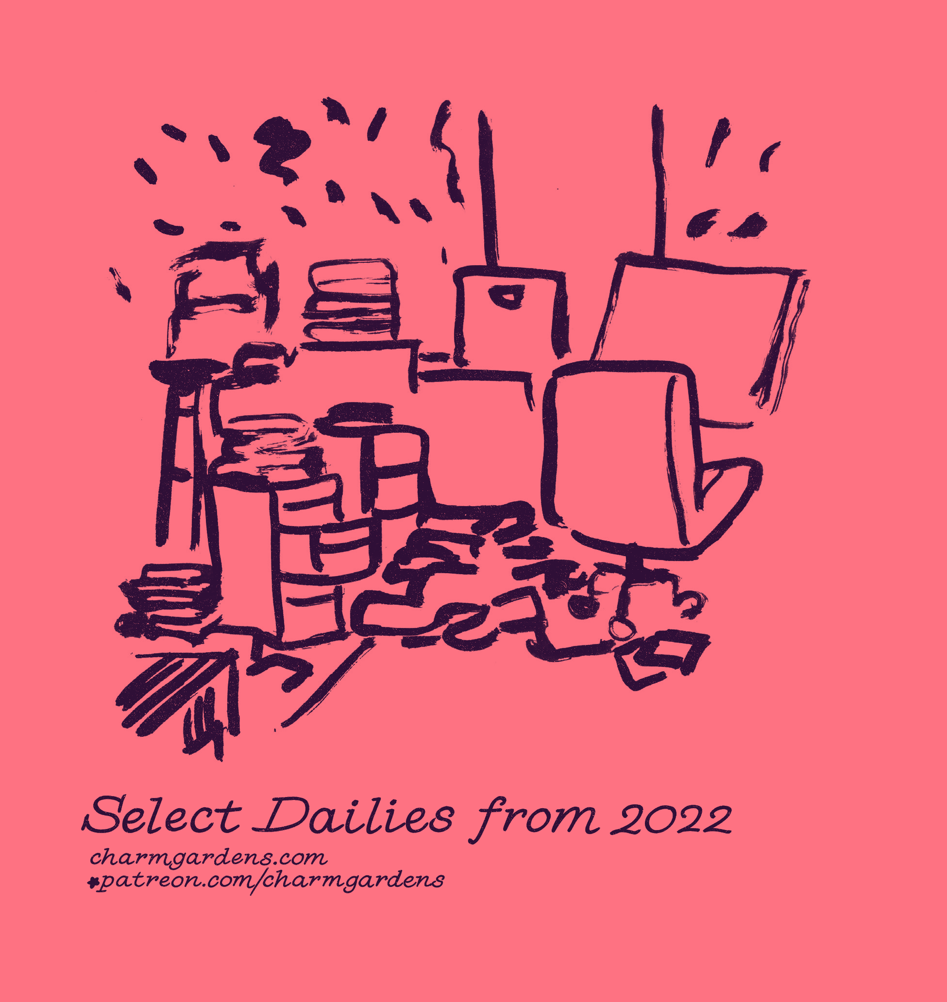Selection of daily diary comics made throughout quarantine. Includes comics from throughout 2022, including "Easy Names," Hourly Comics Day, and quarterly newsletters previously exclusive to Patreon.